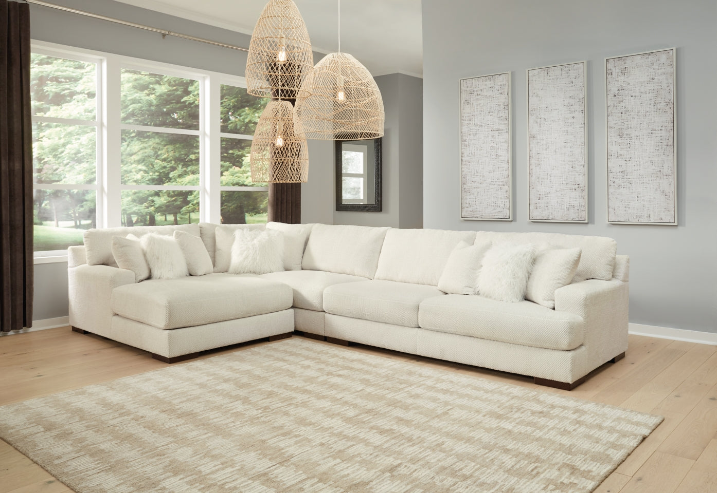 Decadently soft microfiber lends big-time comfort and style to this sectional. A warm, welcoming contemporary design is on full display with its wide track arms and clean lines. Fun faux fur toss pillows bring a bit of glam. A matching faux fur ottoman is available separately.