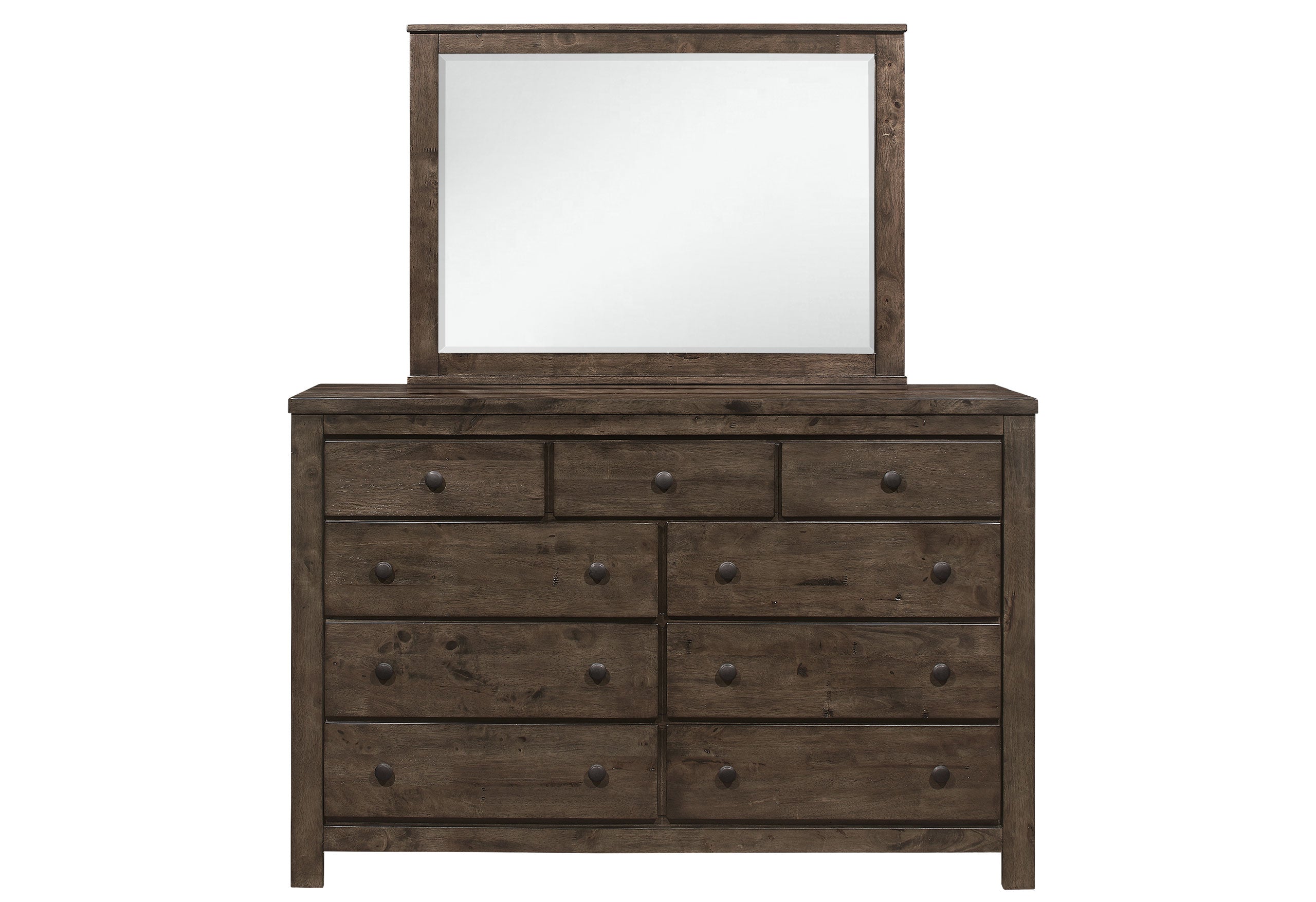 Upgrade your sleeping space with the Peter Grey Oak Collection from Global Furniture USA. The sleek grey oak finish with charming farmhouse elements creates a warm and inviting atmosphere. The tall, slatted headboard and low-profile footboard with a shelf add a touch of elegance while providing practicality. The matching case pieces offer ample storage space, making it a perfect addition to any bedroom.