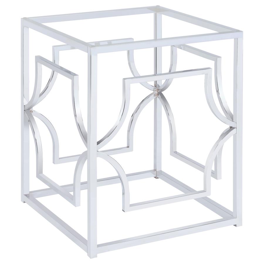 Add a beautiful visual to a dining room with this stunning dining table base. Traditional in style, the metal frame features an openwork pattern. Sharp curves connect to create an airy feel, upgraded by a modern chrome finish. Radiant and metallic, the base enlivens any space with its reflective aura. Top with a round or square glass table top for a showstopping look.
