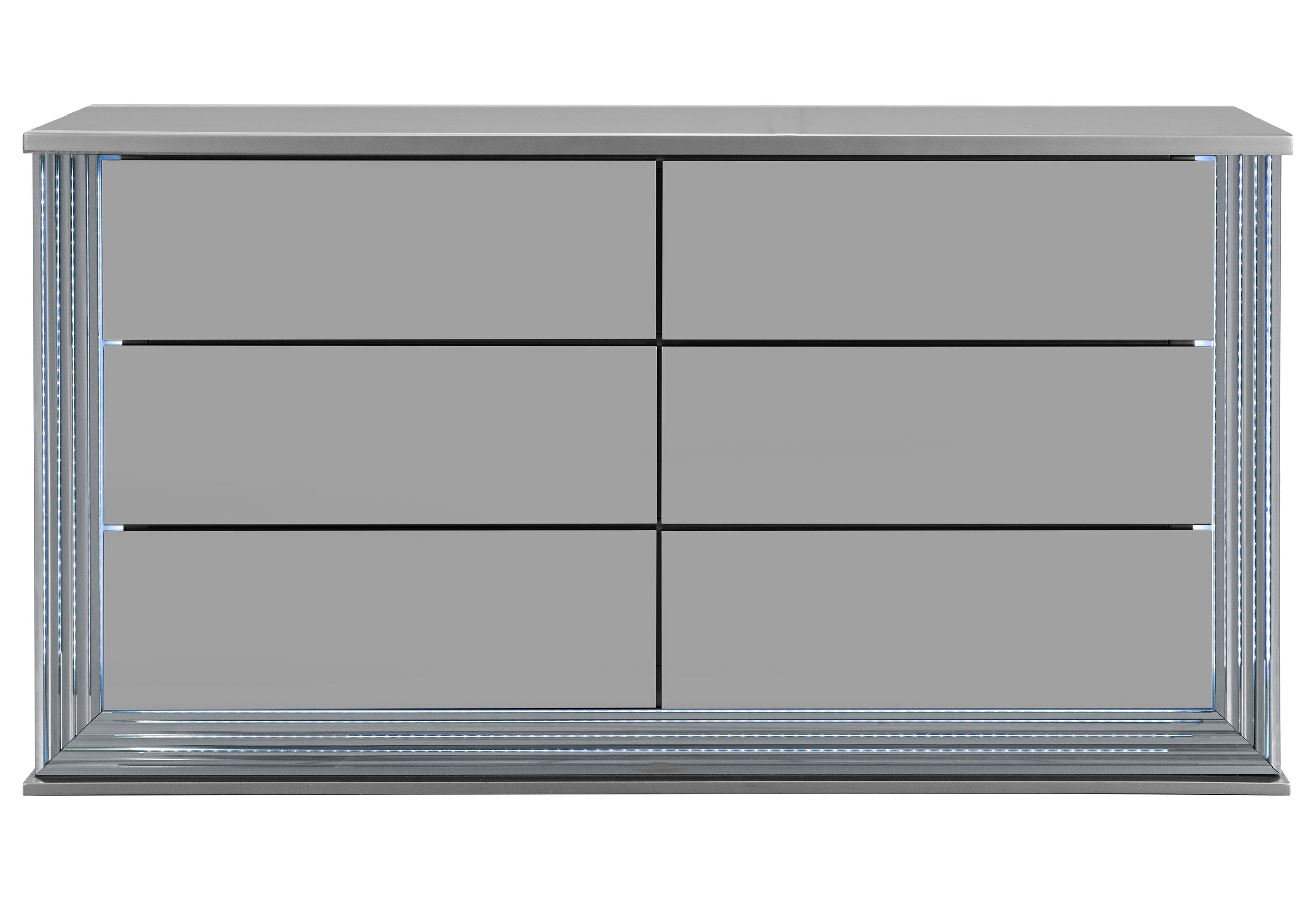 Introducing the Ylime Collection by Global Furniture USA - a stunning addition to any bedroom. Crafted with a sleek, deco modern design, this collection features rich chrome accents on all pieces and LED accent lighting. The real showstopper is the LED accents that add a touch of luxury and sophistication to the overall look. An available large matching vanity with stool makes this one of the most accommodating, complete solutions for your bedroom.