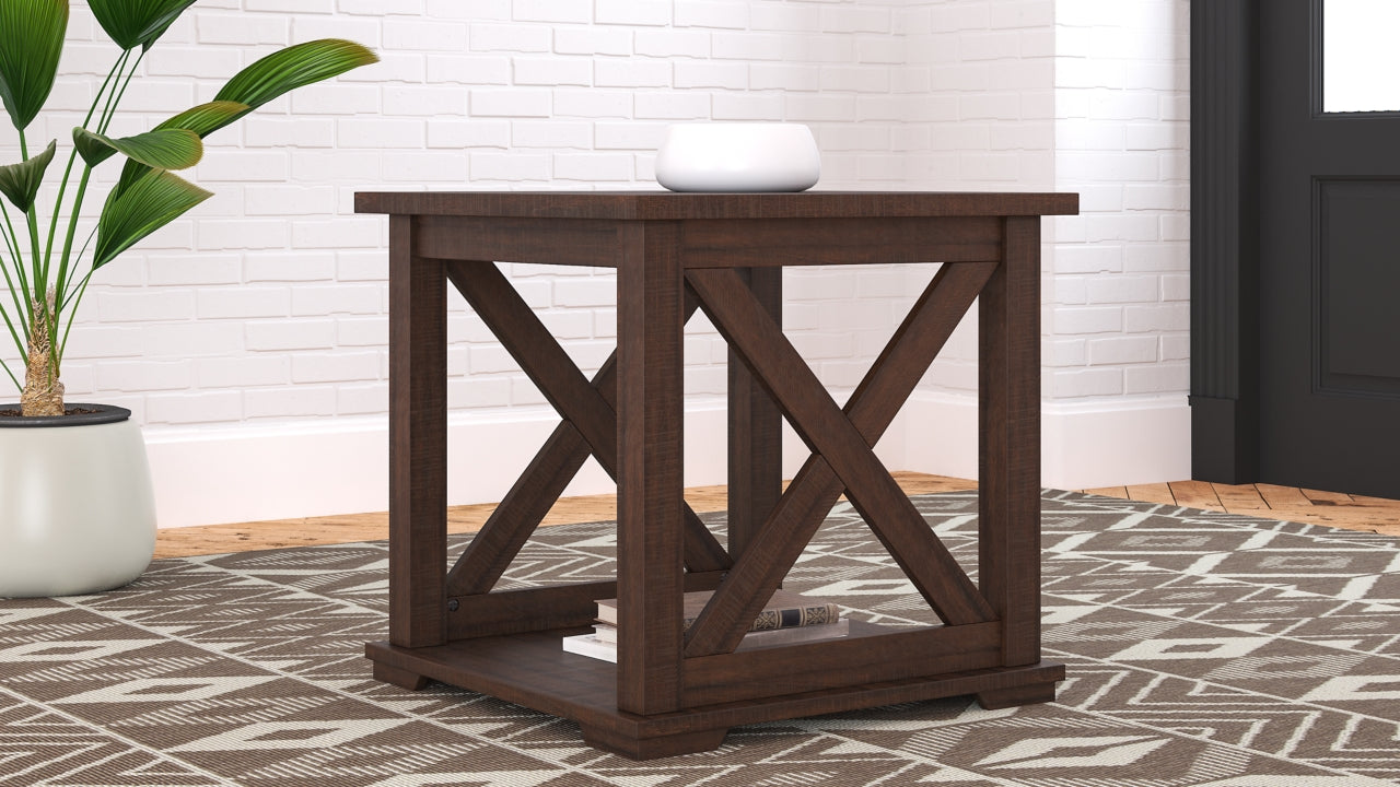 Raise the bar on modern farmhouse design with this versatile end table. Sporting a handsome weathered oak effect and cross buck design, this table makes a statement wherever it lands. With its generous shelved storage space, this home essential is packed with possibilities.
