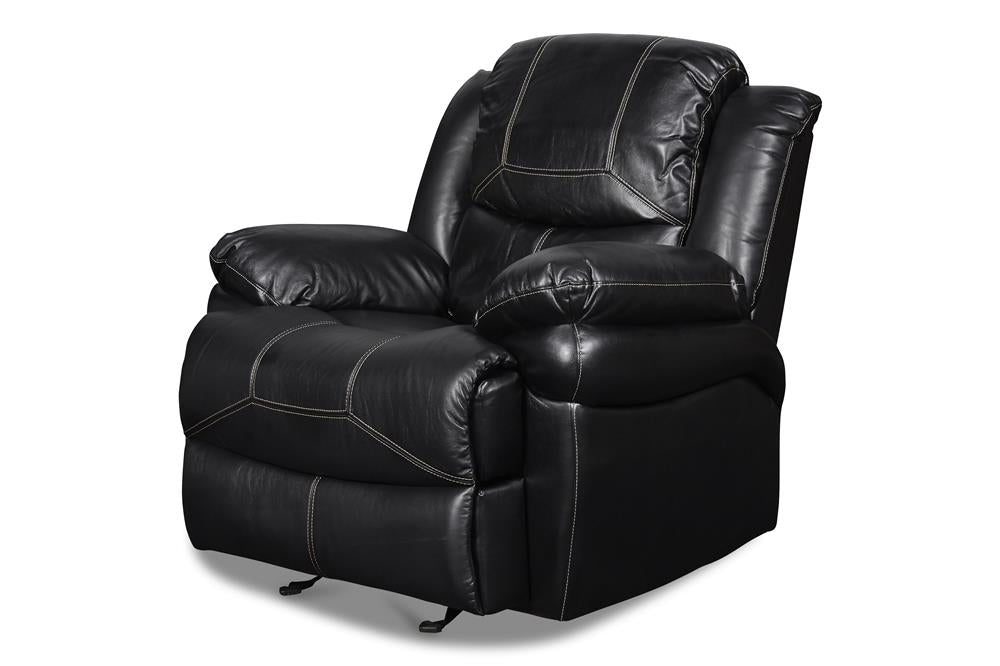 The Flynn motion collection is a stylish and comfortable addition to any living space. The sofa, console loveseat, and glider recliner are all upholstered in a sleek Premier Black performance fabric that is made of 80% polYester and 20% faux leather. The hardwood and plywood frame ensures durability and support, while the sinuous spring "no sag" deck support and 72 pocketed spring cushion provide comfortable seating. The memory foam topper adds an extra layer of comfort, and the polYester fiber fill backs provide added support.For added convenience, the Flynn motion collection a 7 way lighted base, illuminated cupholders, and a task light for reading or other activities. There is also a storage drawer for organizing small items. The recliner is available in both manual and powered footrest options, allowing you to choose the one that best fits your needs.