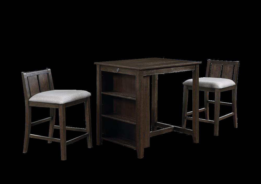 HESTON 36" STORAGE COUNTER TABLE SET W/2 CHAIRS-CHERRY
