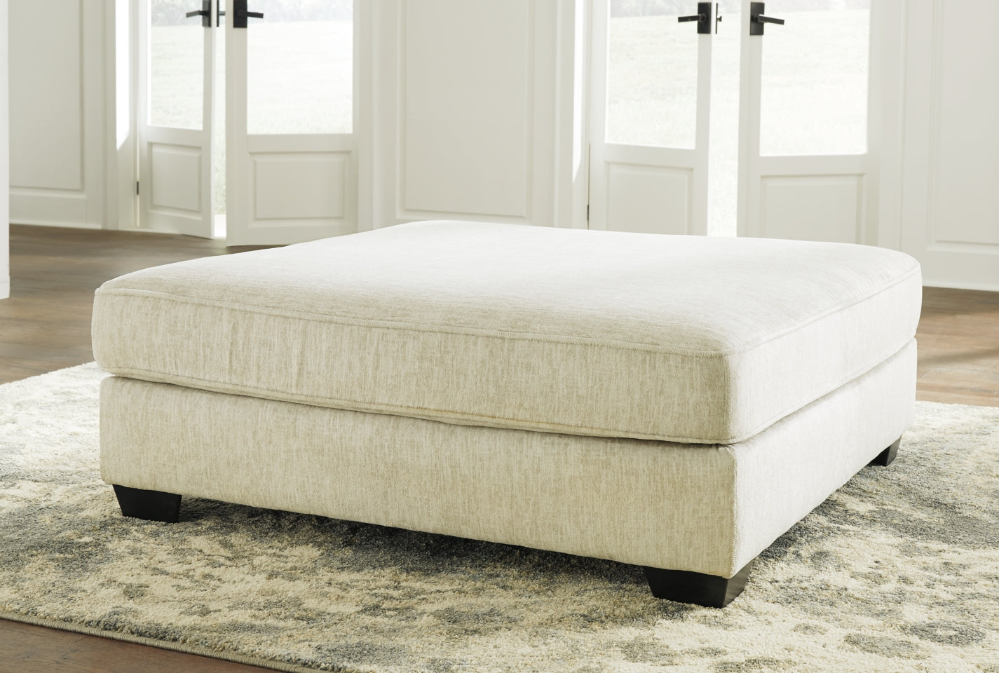 Make room for big-time comfort and style with this oversized ottoman. Designed to multitask as a footrest and casually cool coffee table, this firmly cushioned square ottoman is covered in a decadently soft chenille microfiber that’s love at first touch.