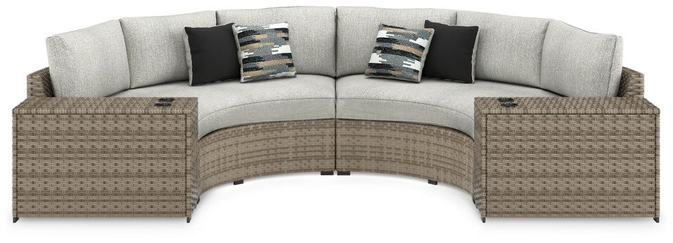 This cool, casual seating set will raise the comfort level and visual appeal of your outdoor living area. Made with handwoven wicker in easy-going beige tones, the pieces blend beautifully into your lanai or pool and patio area. The comfy cushions are wrapped in Nuvella® high-performance fabric that is stain-resistant, fade-resistant and easy to clean. Plus, the matching console features a pair of drink holders to accommodate you and a guest. What a way to create a space that holds up to Mother Nature and ages gracefully for years of enjoyment.