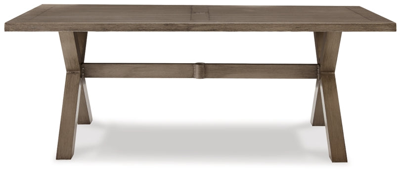 Balancing effortless natural beauty and minimalist design, this dining table seamlessly brings your contemporary style outdoors. Sporting a wood-look finish, it entices with its striking linear form. This sleek yet durably made table refines the art of relaxed outdoor living.