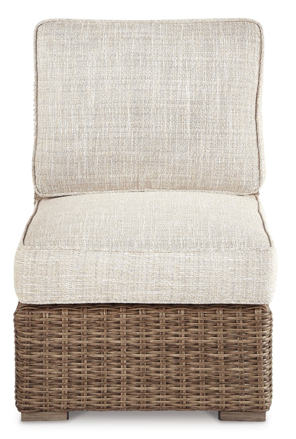 Sporting an easy-on-the-eyes look inspired by driftwood, this cushioned armless chair elevates the art of indoor-outdoor living. Beautiful and durable enough for indoor and outdoor use, the high-style/low-maintenance armless chair entices with plush, removable cushions wrapped in Nuvella® fabric that’s a breeze to keep clean.