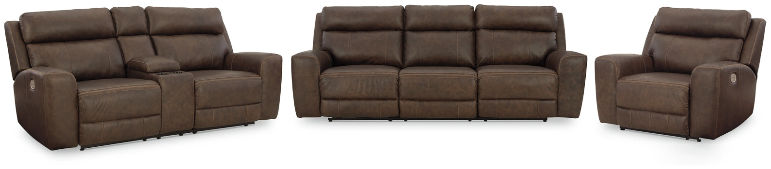 Grounded with its umber hue, positively luxurious with real leather in the seating areas. This spacious power reclining package indulges you in contemporary comfort with one-touch power controls and adjustable headrests. Its upholstery elevates your aesthetic with an eye-catching crackle effect, simultaneously amplifying the large-scale silhouettes.