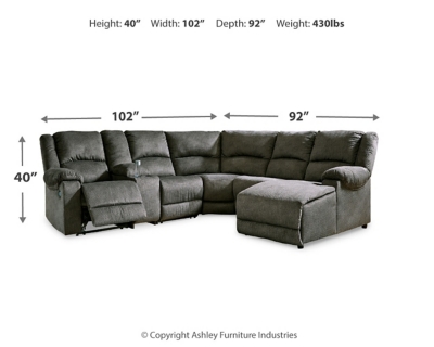 With plush cushions and wraparound pillow top arms, this sectional takes comfort to a whole new level. Its herringbone-patterned velvet upholstery requires minimal care, making this relaxation station ideal for homes with children and pets. The reclining feature engages with the pull of a tab, putting pleasure and instant relaxation at your fingertips.