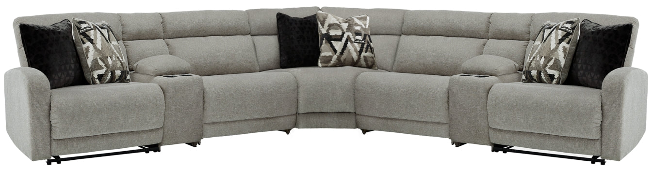 Delightfully modern. Exceptionally comfortable. When it comes to modular furniture with easy-elegant appeal, it’s hard to beat this power reclining sectional. Wrapped in a decadently plush stone-tone fabric for neutral versatility, this chic sectional is dressed to impress with a clean-lined divided back, curved track arms and a low-profile back for a relaxed, contemporary aesthetic.