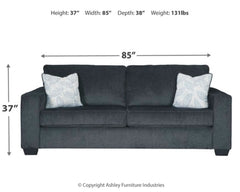 If style is the question, then this sofa is the answer. Sporting clean lines and sleek track arms, the decidedly contemporary profile is enhanced with plump cushioning and a chenille-feel upholstery, so pleasing to the touch. Sure to play well with so many color schemes, this sofa in slate gray includes a pair of understated floral pattern pillows for fashionably fresh appeal.