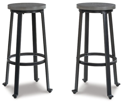 Talk about a cool set of 2 bar height stools. This bar stool's metal frame has a blackened pewter-tone finish and a distressed antique gray wash seat. The replicated plank design adds modern farmhouse feel that welcomes everyone home.