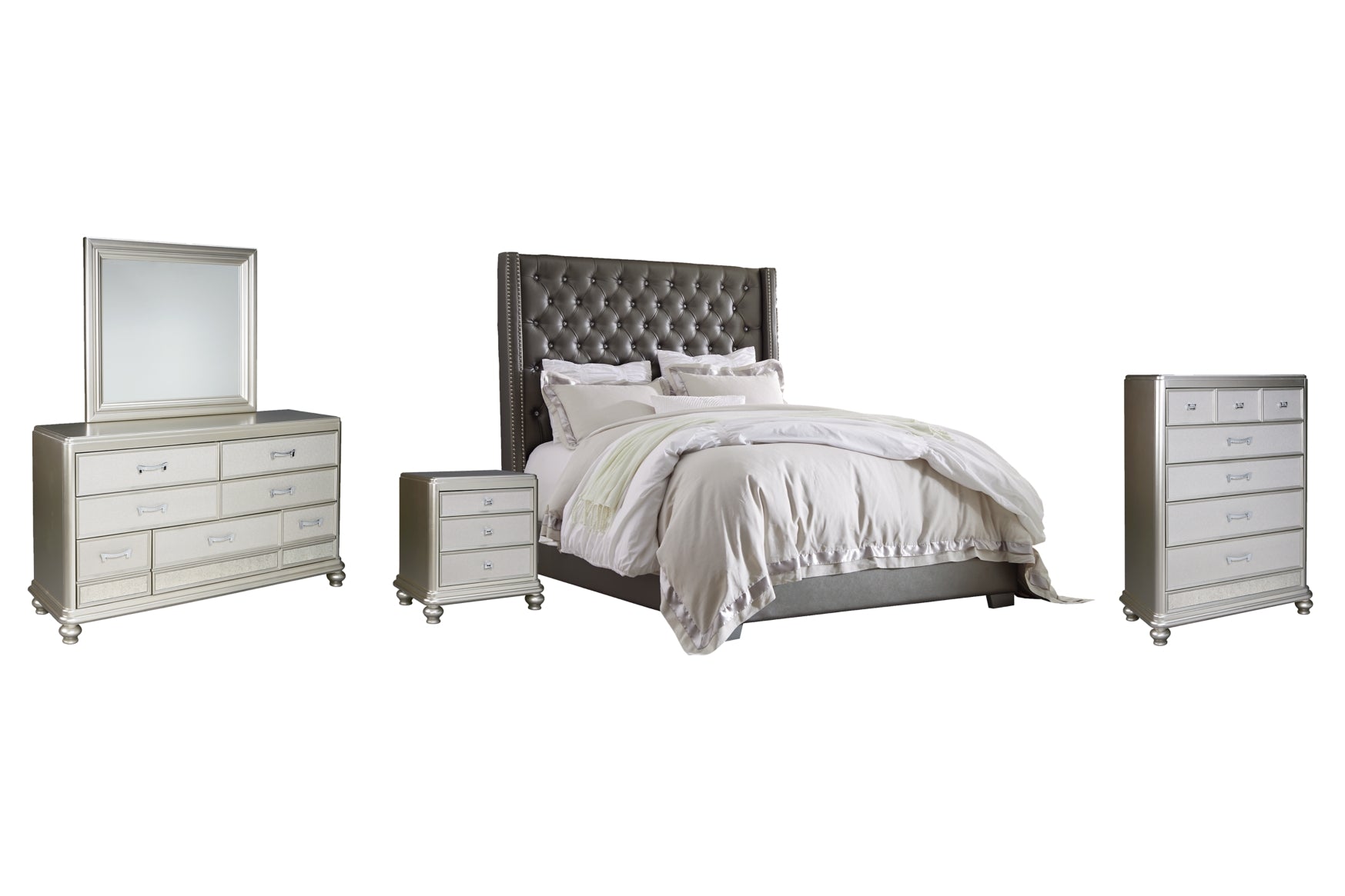 This exquisite bedroom set allures with the glitz and glam befitting silver screen queens. Its metallic tone channels that Hollywood Regency flair you've been dreaming of. Crystalline buttons, faux shagreen texturing and a touch of bejeweling sheen elevate this set to interior fashion’s A list.