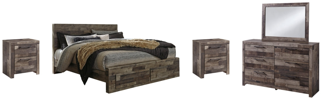 Derekson King Panel Bed with 2 Storage Drawers with Mirrored Dresser and 2 Nightstands