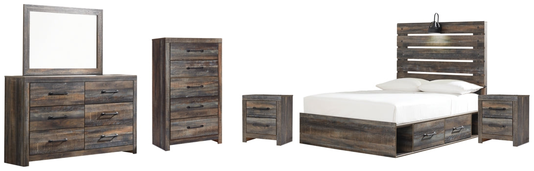 Drystan Full Panel Bed with 4 Storage Drawers with Mirrored Dresser, Chest and 2 Nightstands