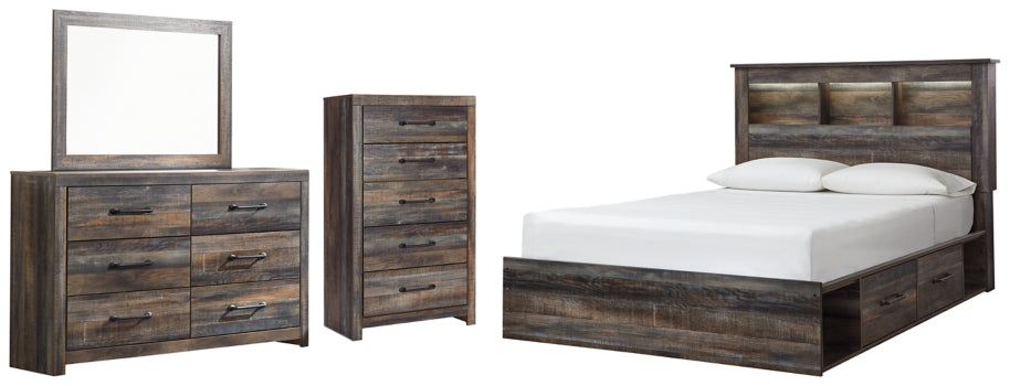Drystan Queen Bookcase Bed with 4 Storage Drawers(64"W x 65.25"D x 60.75"H)