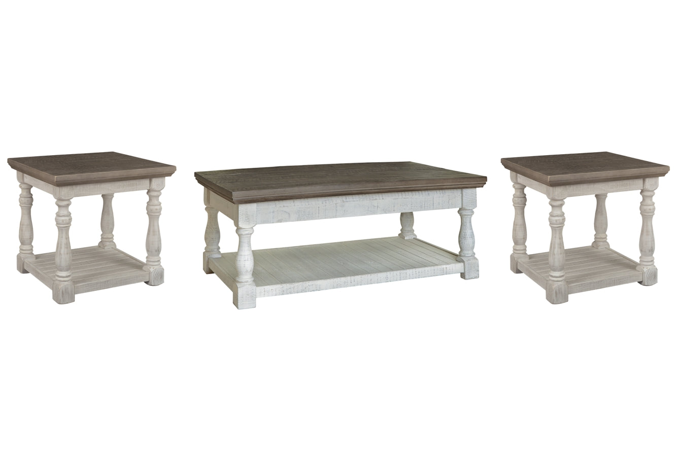 With its richly rustic finish and textural mix, this occasional table set goes to town on modern farmhouse style. Distressed two-tone treatment blends a weathered gray with vintage white for an utterly charming effect. Robust legs lend a hearty, substantial look that feels right at home.