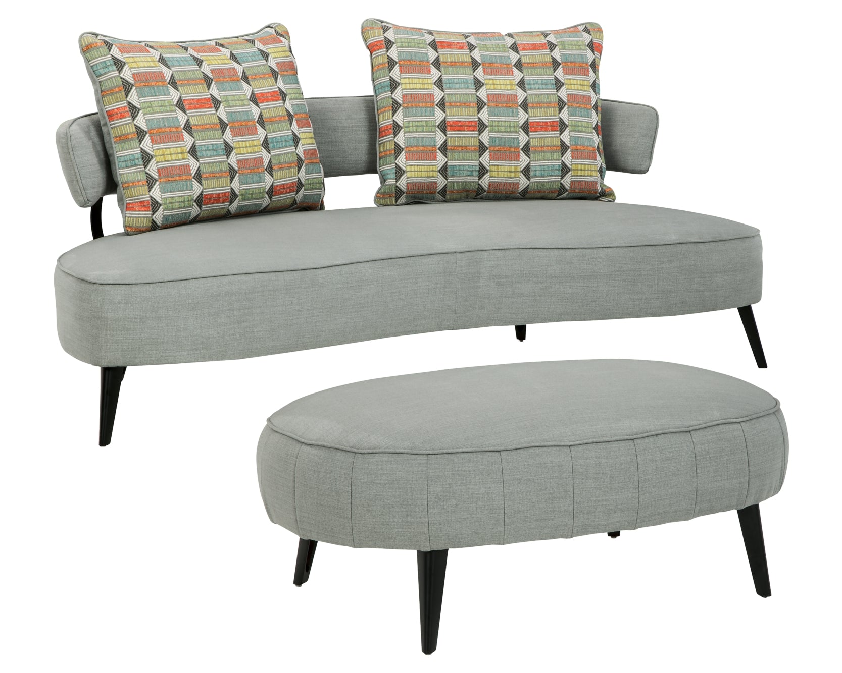 Cool takes a new shape in your living room with this retro sofa and ottoman set. Rounding out your stylish, urban space, this set sports a velvety soft upholstery and sleek, tapered legs. Curl up with comfort, and really turn around your home decor.