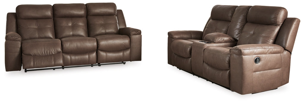 Rustic character comes forth in this warm brown reclining sofa and loveseat set. Designer stitching adds a fashion-forward touch to the soft cushions. Faux suede fabric speaks to your knack for superior-quality materials. High back provides ample support as you get off your feet for a bit. With just one pull of tab, you’ll be easing back into relaxation. Infinite levels of comfort await.