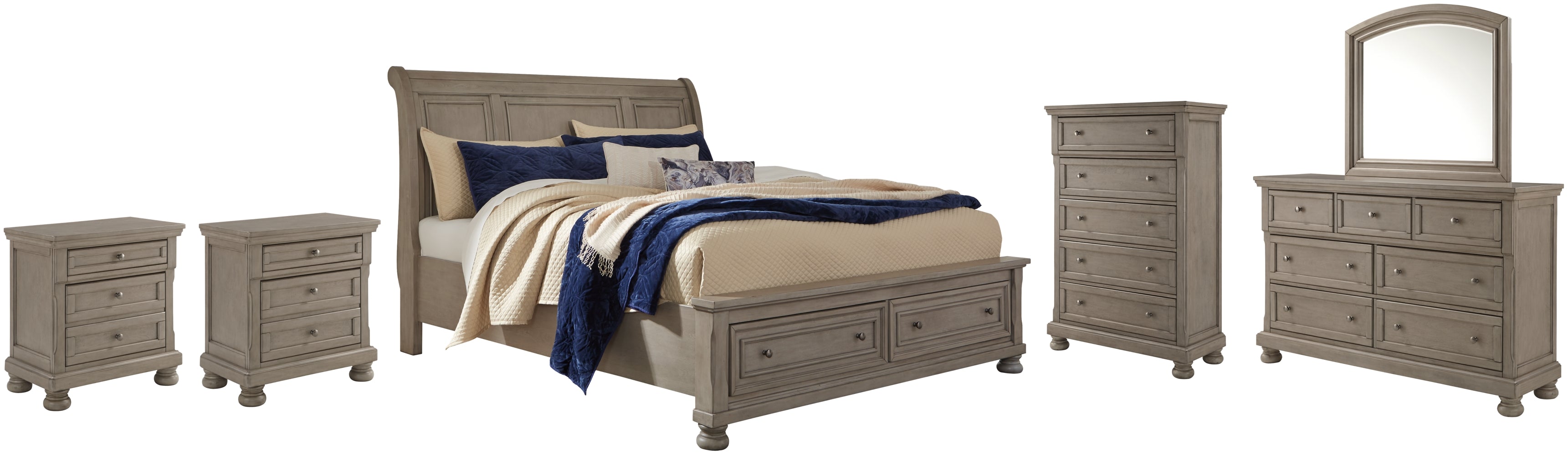 Satisfying your taste for tradition, this 8-piece bedroom set sports serene sophistication. Forever classic design details—inlaid panels, silvertone patina hardware and bun feet—are so easy to love. A burnished light gray finish elevates the look with modern sensibility.