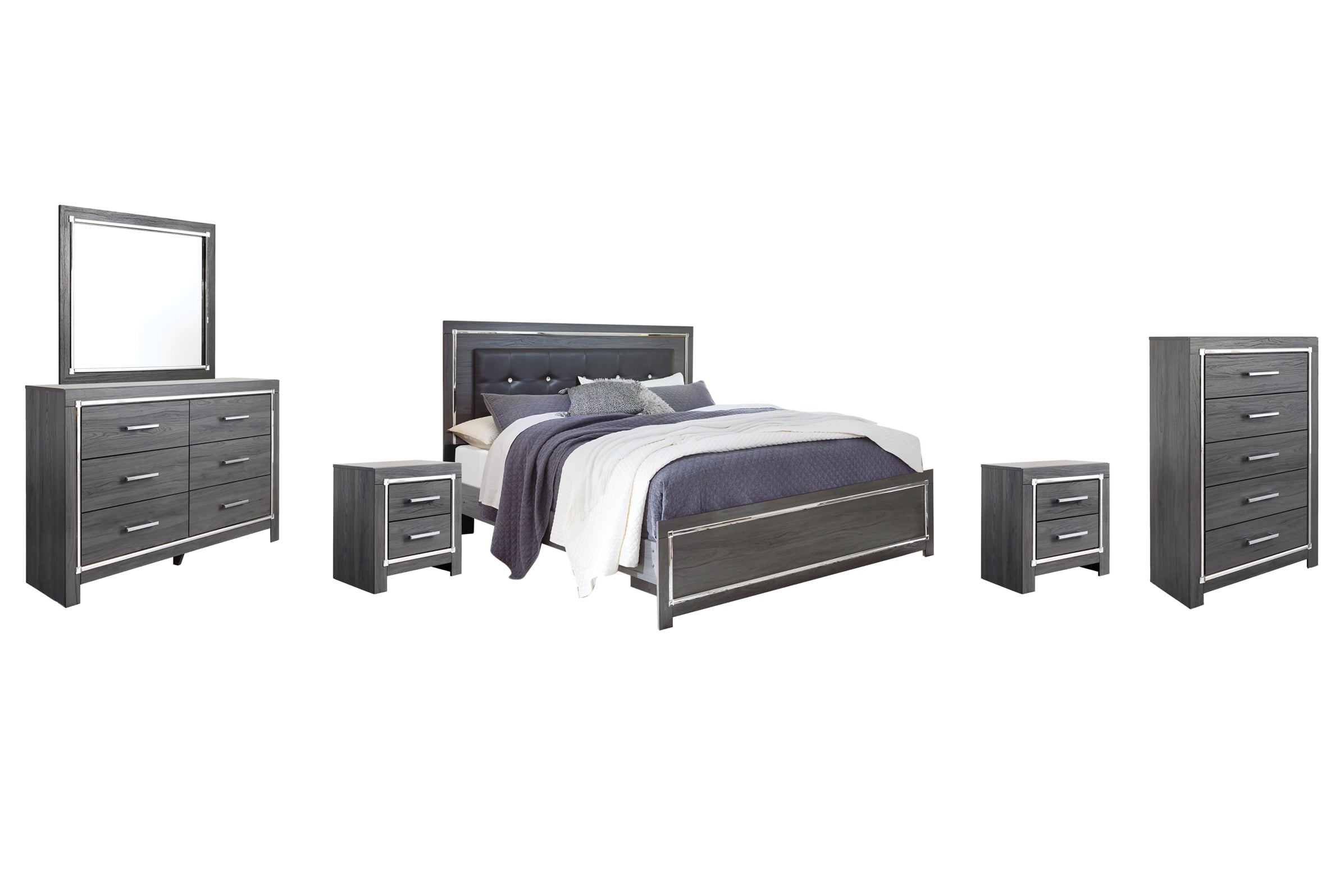 Lodanna King Panel Bed with Mirrored Dresser, Chest and Nightstand
