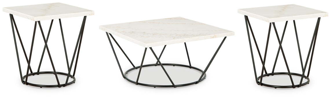 Complete your contemporary decor with this sleek occasional table package. Marble tops are elegantly on trend, with a matte black metal frame providing streamlined support. The irresistibly modern set expertly balances forward-thinking style and everyday function.