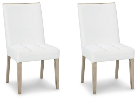 Dress your dining room in exceptional style with this dining side chair. Its light bisque wood finish and faux leather upholstery hit just the right note for a crisp, contemporary look. The chair's modern design and sleek aesthetic make for a lovely ensemble.