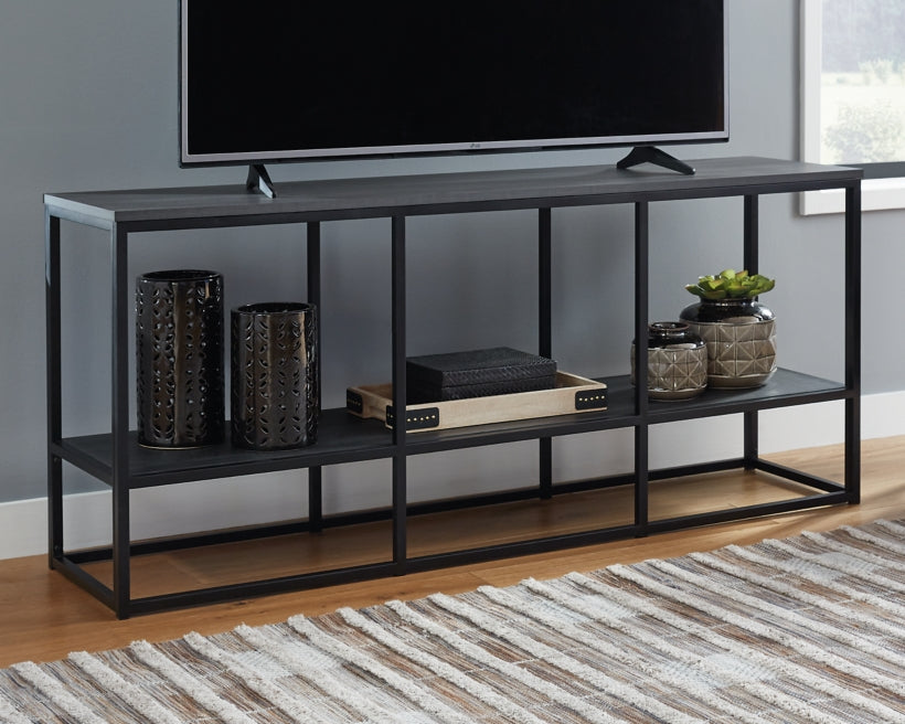 Grace your entertainment space (or home office or dining room, for that matter) with this masterfully styled and wonderfully versatile TV stand. Pairing a dark wood grain look with a sleek goldtone metal base, it’s beautifully in tune with contemporary and mid-century modern spaces.