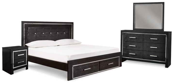 Kaydell King Upholstered Panel Bed with Mirrored Dresser and Nightstand