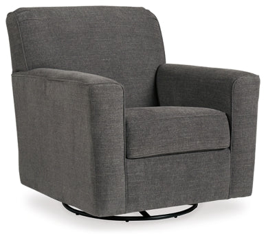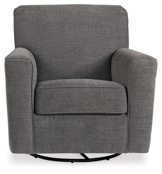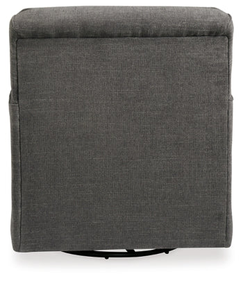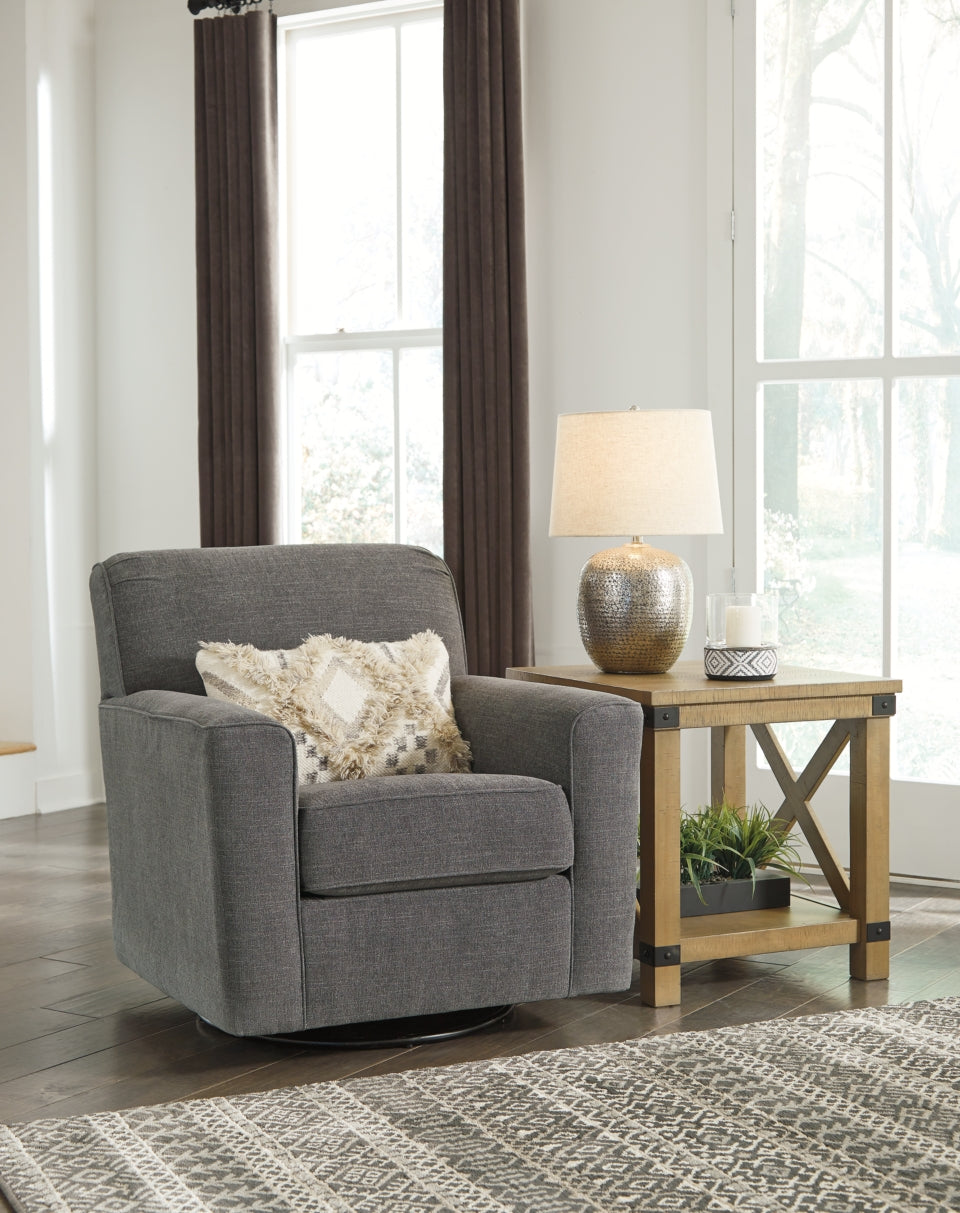 Head-turning, contemporary style and modern comfort are yours for the taking—at a comfortably cool price—with this swivel glider accent chair in charcoal gray. Gentle gliding motion lets you rock your cares away. Chair’s 360-degree swivel ensures you always have the best view in the house.