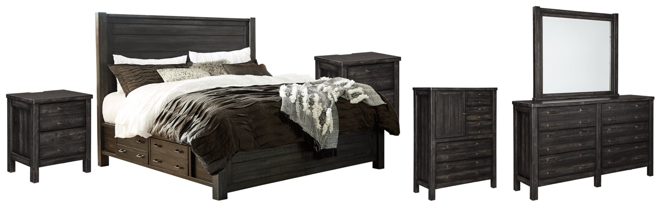 Aim higher for a casual-elegant farmhouse aesthetic with this versatile bedroom set. Its square, “stocky” styling is richly enhanced with plank-effect details and a distressed vintage black finish that’s not too light and not too heavy. Rest easy, you’ll find plenty of ways to fill the bed’s built-in storage drawers.