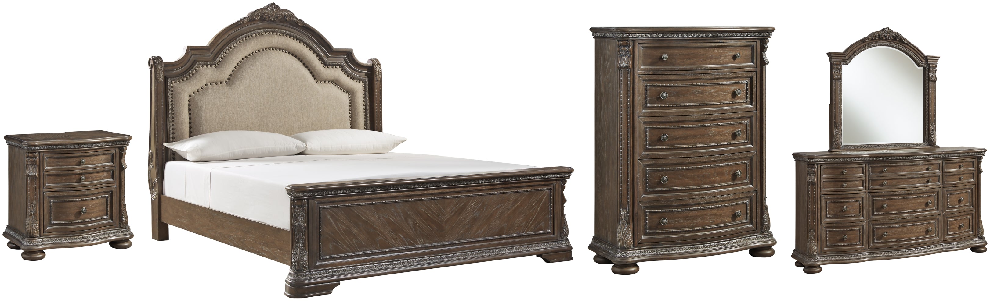When only the best will do. This 6-piece bedroom set with its uniquely luxurious interpretation of traditional style says it all. Exquisitely crafted and treated to a multi-hued finish, it’s clearly a labor of love.