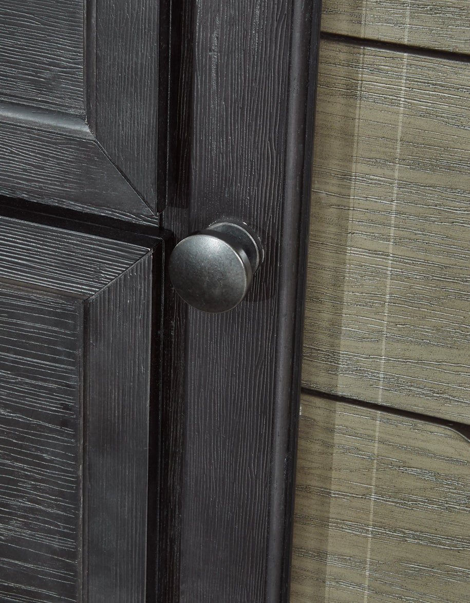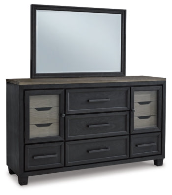 This dresser and mirror set is casual contemporary style simply done right. Its two-tone color scheme features a rich brushed black main color accented with a beautiful dusty grayish brown wood tone. With 11 soft-close drawers (three located neatly behind each door) the dresser offers plenty of storage to accommodate your wardrobe needs with ease.