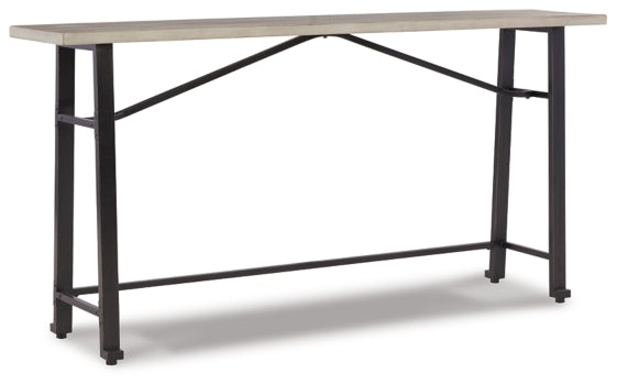 Bring that trendy bar atmosphere home with this long counter-height table. Featuring an acacia veneer tabletop in a whitewashed finish and a dark metal frame for farmhouse fresh appeal, it works well against an open wall or floated behind a sofa to make the most of your living space. Customize your comfort with adjustable height swivel stools (sold separately).