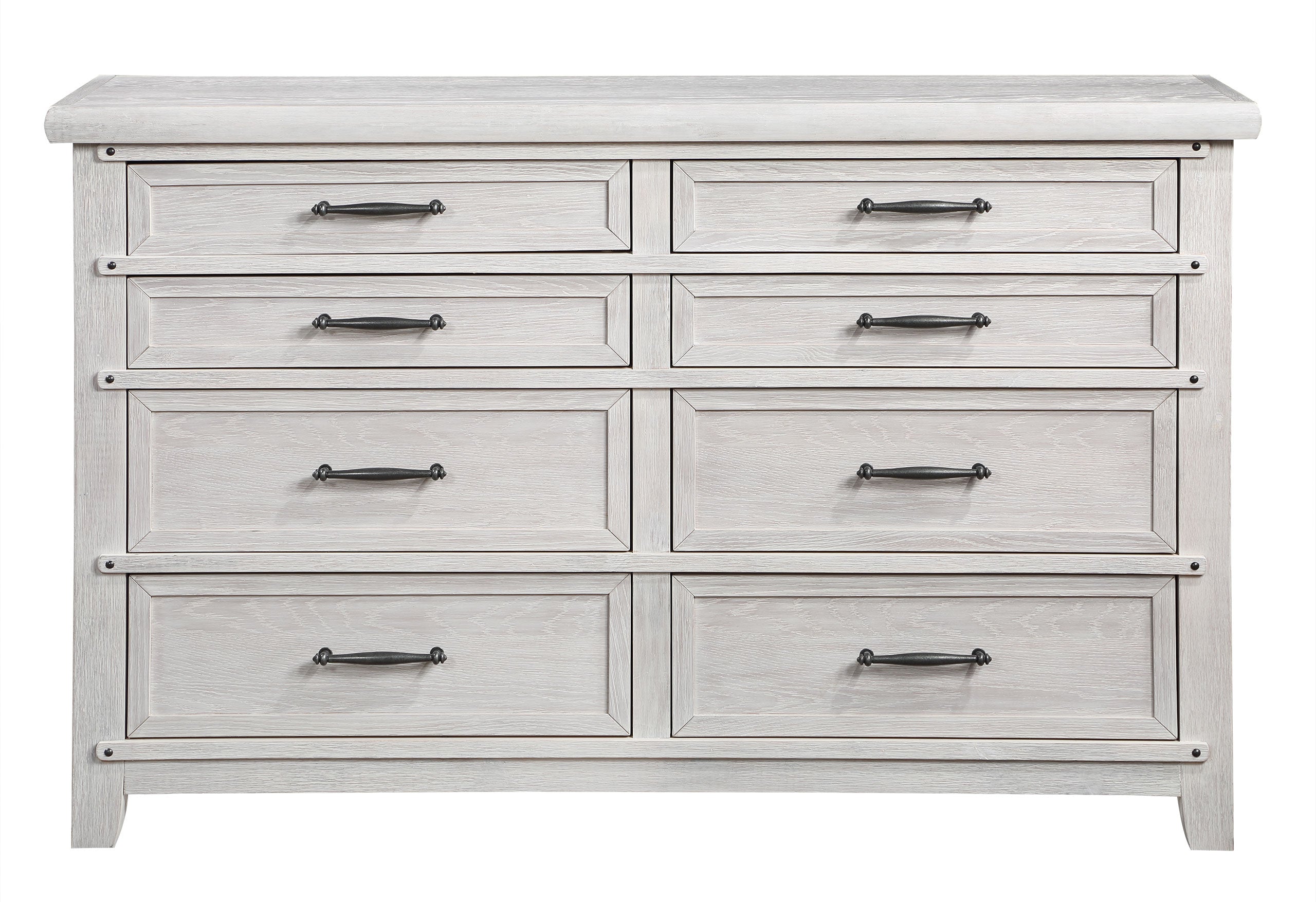 The Levi features an upscale farmhouse design that incorporates traditional farmhouse elements with some modern touches. The extra thick tops on the dresser, chest and night stand and top rail on the footboard adds to the chunky Barn look. The wood rails outlining the drawers and headboard and footboard Also gives the barn door feel. Taking those farmhouse elements and combining them with a tall sleigh headboard, large landscape mirror and metal hardware creates this warm upscale farmhouse design.