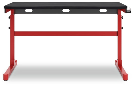 Work smarter (and look cool doing it) with the new-age efficiency of this adjustable height home office desk. Its streamlined design is ideal for gaming or as a general workstation. This super-sleek yet fully-loaded home office desk has a mouse pad surface cover and three height options for ultimate efficiency. The fantastic features also include a headset hanger conveniently mounted on the side, as well as a raceway tucked underneath for managing all your cords.