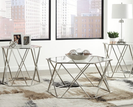 With its sculptural, hexagonal design, this coffee table set lets modern minimalism beautifully take shape. Chrome-tone metal merged with clear glass is sheer brilliance.