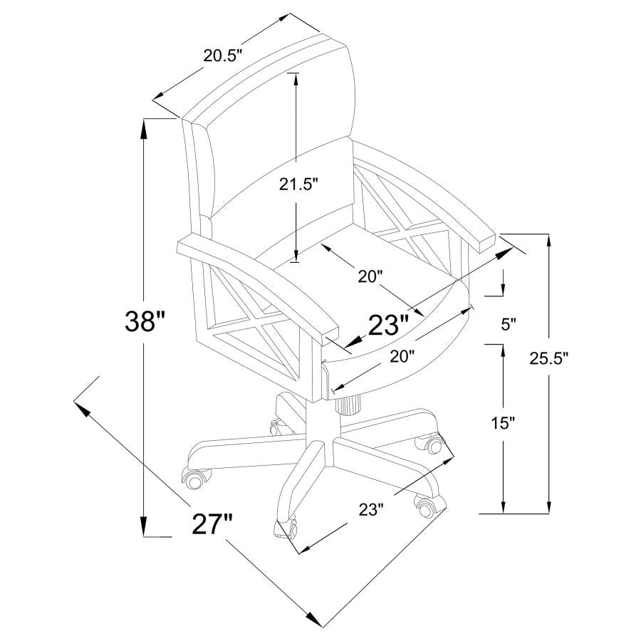Infuse your recreation room with cool, casual comfort. This game chair pairs perfectly with the popular Marietta game table. Upholstered with soft tan fabric, its fashionable look is rounded out by the striking X-shaped design of its wooden arm rests. Five casters are attached to its attractive, tobacco colored base, allowing for plenty of freedom of movement. A thick, cushy seat allows you and your guests to comfortably settle into for hours upon hours of rousing game play.