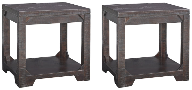 Bring rustic refinement home in a simply striking way with this 2-piece end table set. With highly grained character, the table is treated to a dark rum-tone finish for a handsome, hearty aesthetic. Heavy distressed marks add a vintage look and feel that has so much appeal.