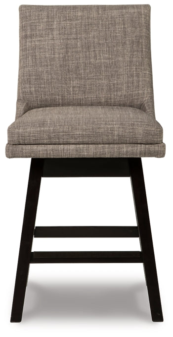 This striking barstool set invites you to take contemporary modern style for a spin. Comfortably cushioned seat, self-returning swivel and contoured back make it beautifully in tune with your needs. Luxurious linen-weave upholstery is a sensational touch.