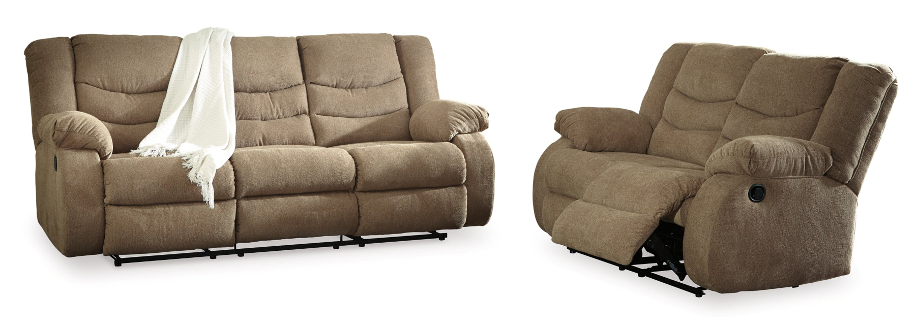 This reclining sofa and loveseat set puts the win in winning. Its waterfall back design and doubly plump pillow top arms team up with soft chenille fabric to go for the goal. Ample seating room makes the comfort possibilities endless. Sit back and relax. You won’t go wrong with this reclining set.